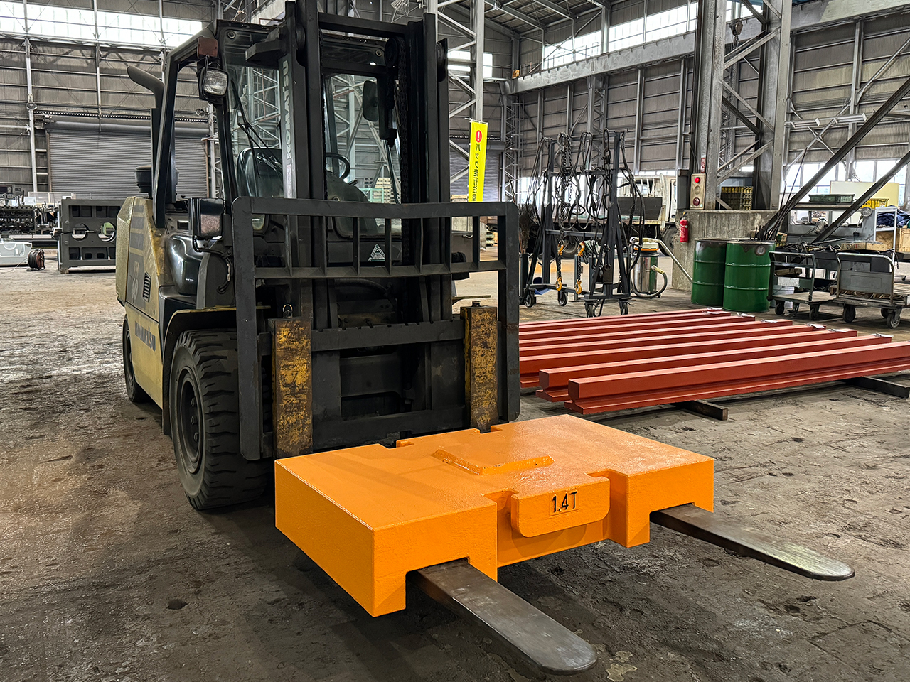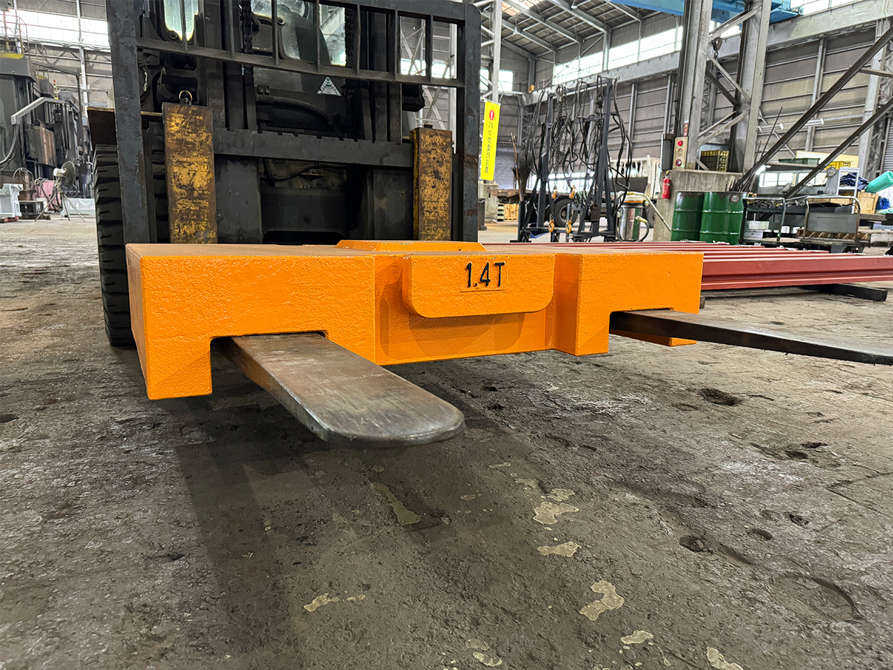 フォークリフトで移動可能なウエイトも製造いたします。また、大規模検査に必要なウエイトも製造可能です。